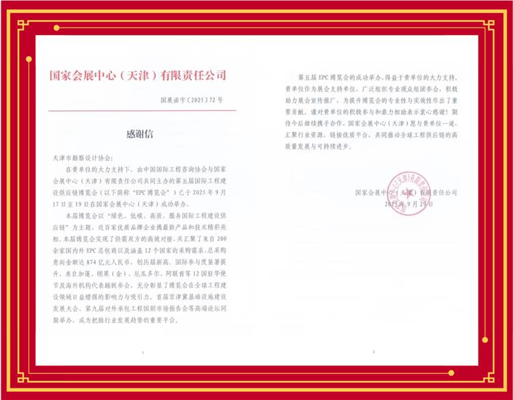 • 国家会展中心(天|)有限责Q公司致天z市勘察设计协会感谢?/p>